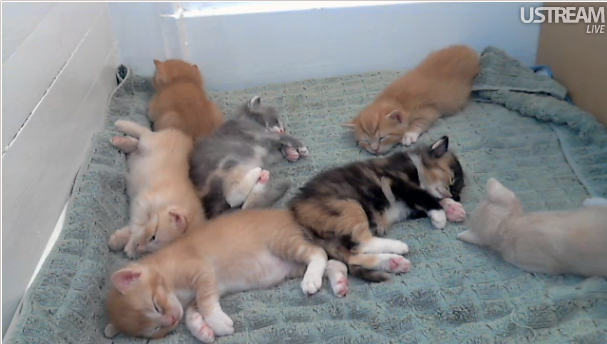 I admit it, I am totally hooked on watching live kitty cams. It is tremendous, harmless fun. Often the comments from fellow chatters is more entertaining than even the kittens.