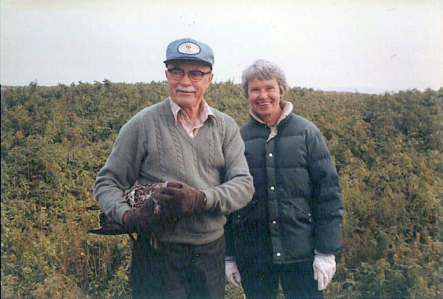 I am a lifelong bird watcher. My mother was passionate about it and got my New York City-raisedfather hooked on it too. They used to take elder hostel trips to sanctuaries to watch bird migrations. Their favorite was a trip to the Audubon sanctuary on Hog Island in Maine with the “rock stars” of the birding world (you can read more about Hog Island here). Here is a picture of them on that trip: