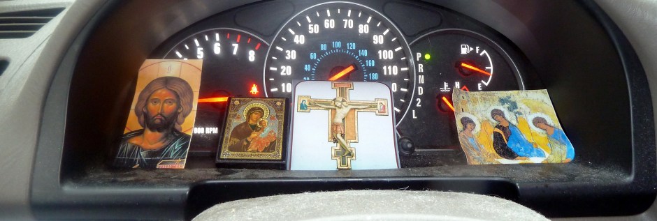 The dashboard contains various pictures and icons that I can gaze upon. God has gifted me with a long commute – two hours each day of time alone. Here I can pray, reflect and sing. And often I end up brainstorming as well. It’s not only a prayer space but a creative space.