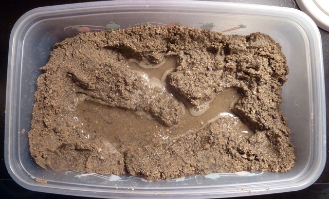 Materials needed: computer or tablet; loose sand or dirt; large square or rectangular Tupperware; water