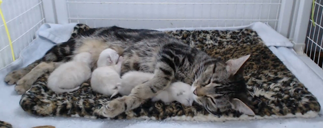 Peter in particular was very active for a newborn, taking trips around the kennel cage and being quite vocal about it. He immediately won the hearts of the over one thousand people who tuned in daily to the cam. There were concerns however that he was burning off all the calories he gained because of his constant motion. John was supplementing him with a bottle and created a box for the nest of kittens as a means of confining Peter and keeping him close to his mother.