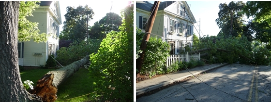 We knew this tree would fall. In the last post I showed how one half of the tree fell during a microburst. The tree that fell yesterday was leaning east and the wind came from the east. Inevitable.